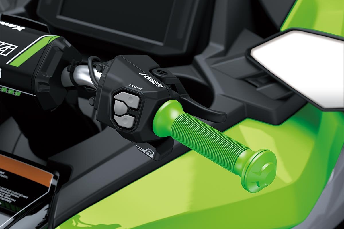 ELECTRONIC CRUISE CONTROLElectronic Cruise Control allows a desired speed (engine rpm) to be maintained with the simple press of a button. Once activated, the rider does not have to constantly apply the throttle. This reduces stress on the right hand when traveling long distances, enabling relaxed cruising and contributing to a high level of riding comfort. |