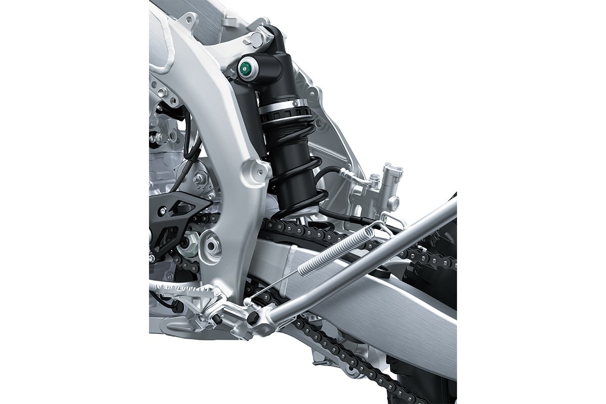 The Kawasaki KX250F was the first mass-production motocross bike to feature Dual Injectors. One injector is located downstream of the throttle valve, where injectors are located on standard FI systems, and a second is located upstream of the throttle valve, close to the airbox. The two injectors split their roles: operating at different rpm ranges, they ensure both smooth, instant response at low-rpm and high peak power at high-rpm. For cases that call for low-rpm operation like instantaneous acceleration off the start and precise control when cornering, primary operation falls to the downstream injector. Because it is positioned close to the combustion chamber, sprayed fuel can be supplied to the engine quickly, resulting in sharp response. Conversely, when high power is the priority, primary operation switches to the upstream injector, which focuses on high-rpm applications. Its location farther away from the combustion chamber means that the fuel has a longer travel time. This allows more time for the fuel particles and air to mix, as well as allowing the mixture to cool and condense. This means that when more power is needed, the cylinder can be filled with a greater quantity of high-quality mixture. |