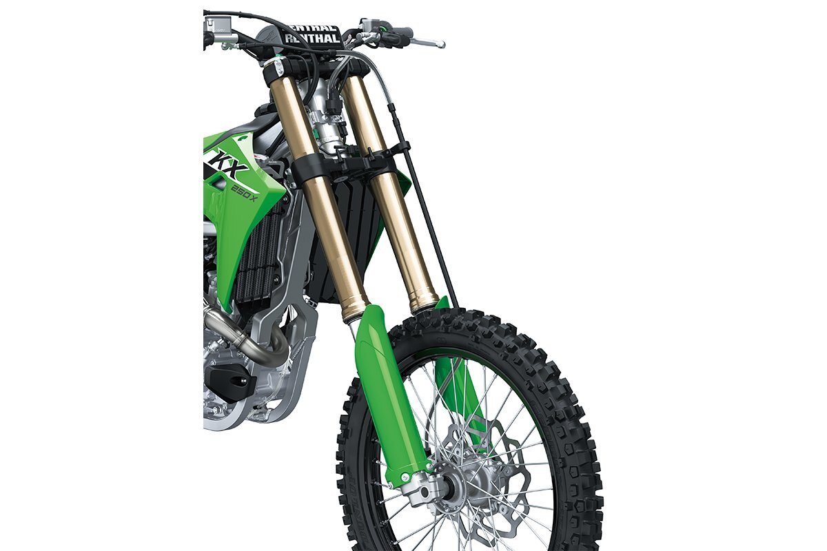 | The new KX250X motorcycle takes cross-country racing to the next level. Tuned for off-road racing, advanced tech like Power Mode selection and Kawasaki TRaction Control (KTRC) combine with a high-performance chassis, a more powerful engine, and off-road ready suspension to equip this championship-proven race machine for the most technical terrain. Climb the ranks quickly and confidently with the bike built for victory. Be Next on the KX250X. |
