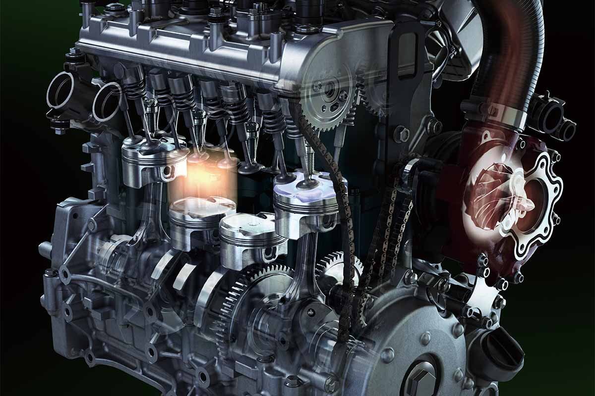 Drawing on the know-how and technology possessed by the Kawasaki Heavy Industries, Ltd. (KHI), Kawasaki’s supercharged engine delivers high engine output while maintaining a compact design. The key to achieving this incredible performance lies in the engine’s supercharger – a motorcycle-specific unit designed completely in-house with technology from the Kawasaki Gas Turbine & Machinery Company, Aerospace Company and Corporate Technology Division.