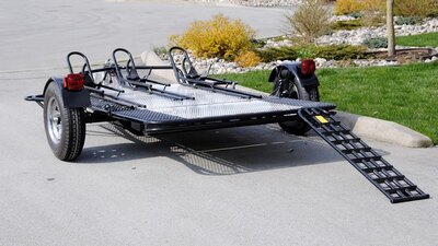 The Marlon AMT Aluminum Motorcycle Trailer is built with an aluminum frame, painted aluminum body with attractive aluminum checker plate accents....